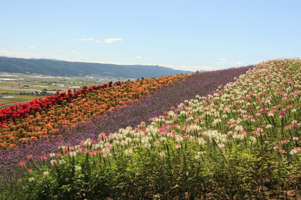 美瑛的四季彩之丘,面積達15公頃,是不輸給富田農場的花田,而且美瑛特有的丘陵地形,讓花田更有躍動感,從5月到11月,這裡依季節盛開著各種花卉,沿著丘陵地形優遊在其中,不僅美景盡收眼底,還兼具運動效果,如果老人家或體力不好,園區也有觀光車或自駕遊覽車,用輕鬆的方式暢遊園區。