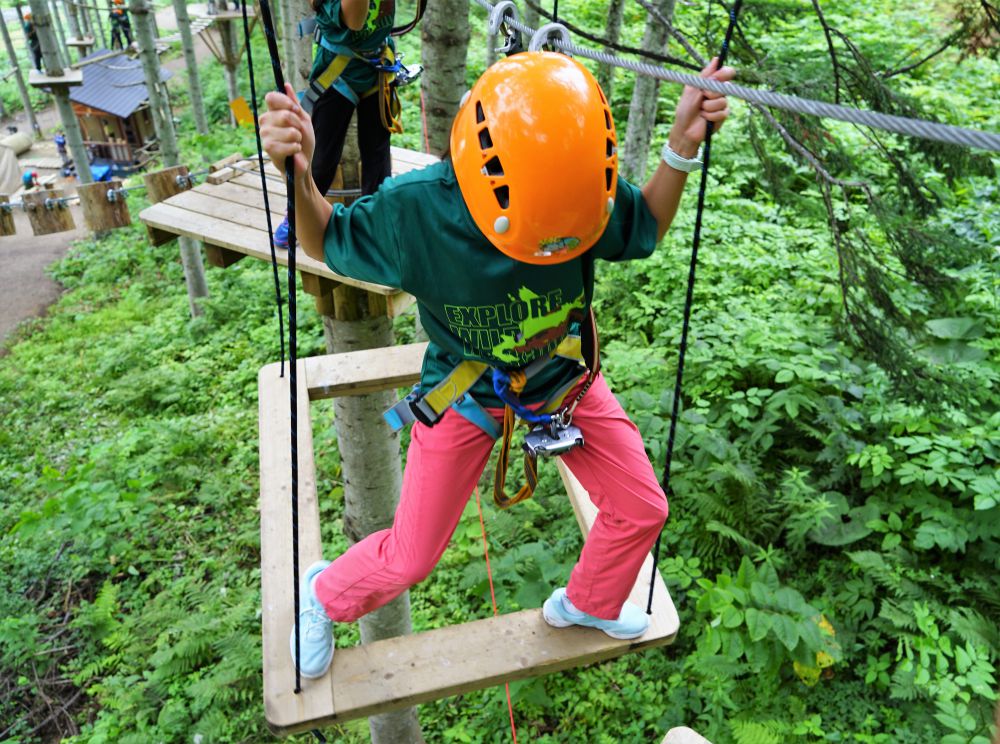 由Niseko Adventure Center (NAC)建造的戶外探險公園,占地廣闊,提供了八種不同難度的樹上攀爬路線,並用顏色區分難度等級,部分區域有身高限制,請稍微留意,這項活動精彩刺激,教練會在攀爬前先進行安全講解,家裡有猴小孩的可以考慮,應該可以充分放電,體能不錯的父母也可以嘗試看看。