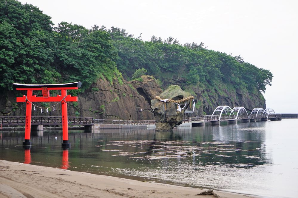 かもめ島散步道全程約2.6公里,因地形很像海鷗飛行的樣子而命名,沿路可以看到瓶子岩、潟湖拱橋,栓北前船木樁遺跡、砲台遺跡、嚴島神社、弁慶足跡、井戶、復原的開陽丸等。建議下午接近傍晚前往,可以順便觀賞被列入「日本夕陽百選」的夕陽。