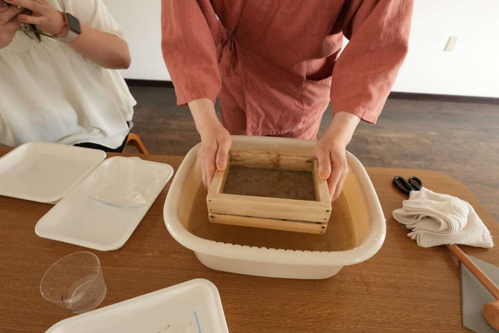 在兩小時內製作兩張明信片大小的和紙,製作的和紙可以帶回家作為紀念品。