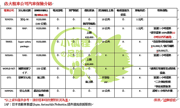 但各家租車公司的保險內容都有少許差異,請讀者多加注意。