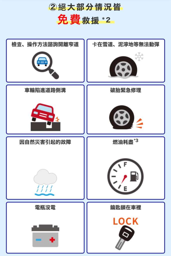 還免費附加提供道路救援、緊急救援,