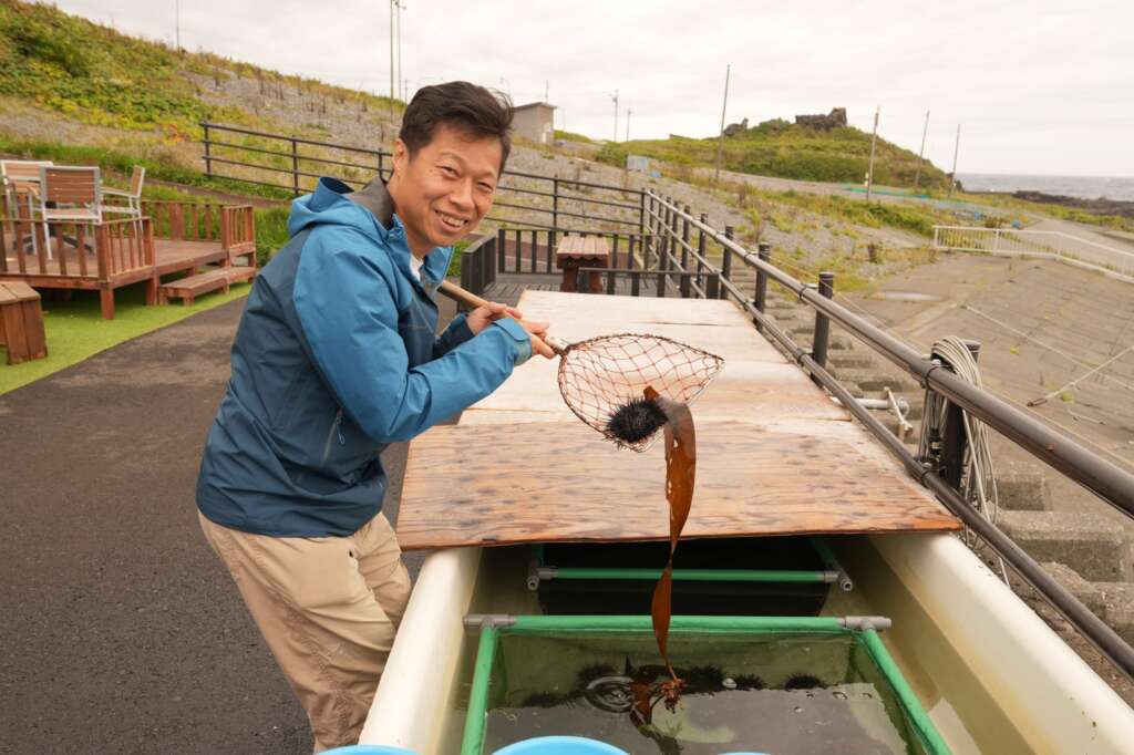 利尻島神居海岸公園,在海膽捕獲期(6~9月)就有剝海膽體驗,可親自從玻璃水槽挑選海膽(不是大顆就好,有時是空包彈),運氣好的話,您還可以在港內停靠的船上親自體驗親自操作水鏡捕撈海膽,然後在工作人員指導下,當個偽海女,親自使用工具剝開海膽,用刮棒取出黃澄澄可食用部分,小心翼翼分離內臟碎殼等無法食用部位,然後使用乾淨海水輕柔漂洗,最後,就是親自品嚐大自然的恩賜了!