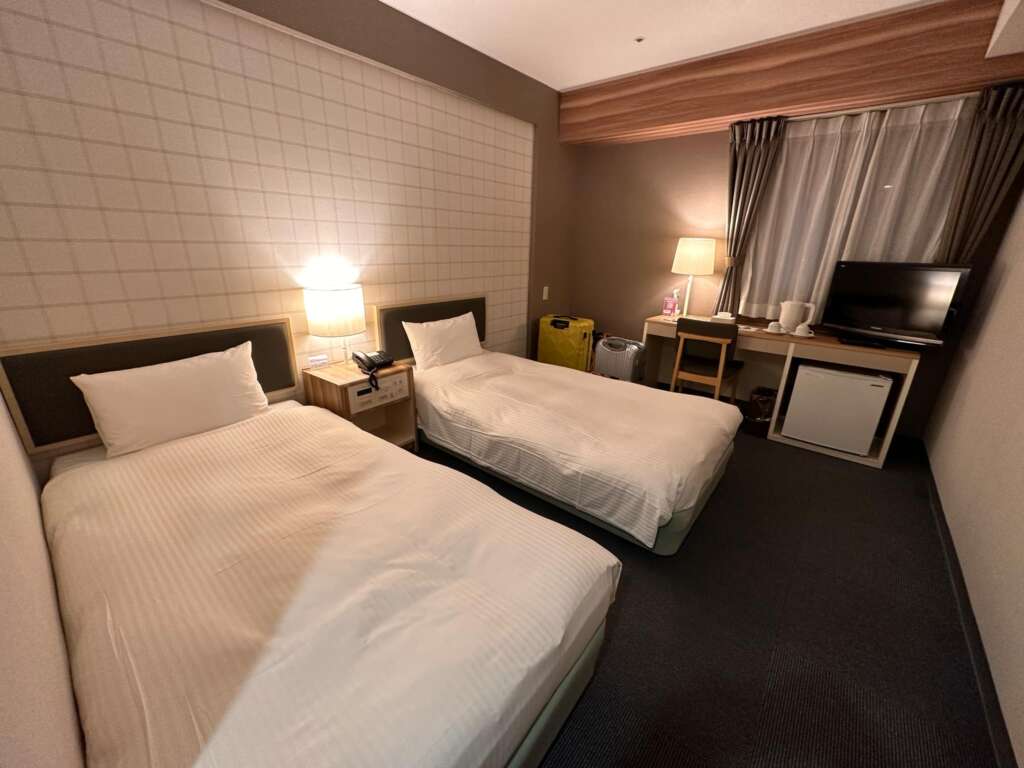 姊會住這家飯店唯一的原因,就是淡季時實在便宜到哭爸!本來就蠻愛住在中島公園附近,早上就能信步到中島散策,當時雙人房含早餐的價格是不可思議的5000日幣有找,就去除雷看看。簡易型的商務旅館,櫃台小小的,也不是24小時服務,入口有免費的寄物櫃, 可供住宿者暫放行李,房間很小、雙床型一個床應該只有超窄的100公分寬吧(不要被阿計的廣角鏡騙了)?浴室小又昏暗、早餐更是姊吃過排名前三爛,甚至可榮登冠軍。但姊還是住了3晚,因為這價格比膠囊還便宜,實在不忍苛責。 文章導覽 富良野住宿:民宿Mr.GNU(ミスター・ヌー)知床KIKI飯店:房間及公共空間介紹