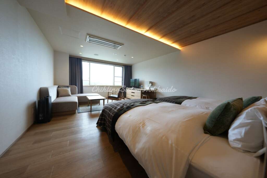 這家位在知床半山坡上,2011年5月311大地震不久,姊曾經入住過,當時的飯店名是<風之四季>的樣子,後來由北辛夷在2018年重新裝修開幕,才改稱為KIKI,所以跟北辛夷可說是姊妹飯店
