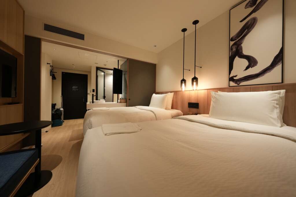 這3家飯店,地理位置幾乎都在鳥不生蛋的地方,適合像姊喜歡靜謐的道友,房間文青風,有無印良品飯店升級版的FU,很新、超級新,並奢侈的使用了席夢思床墊,讓姊懶到趴在床上寫文。