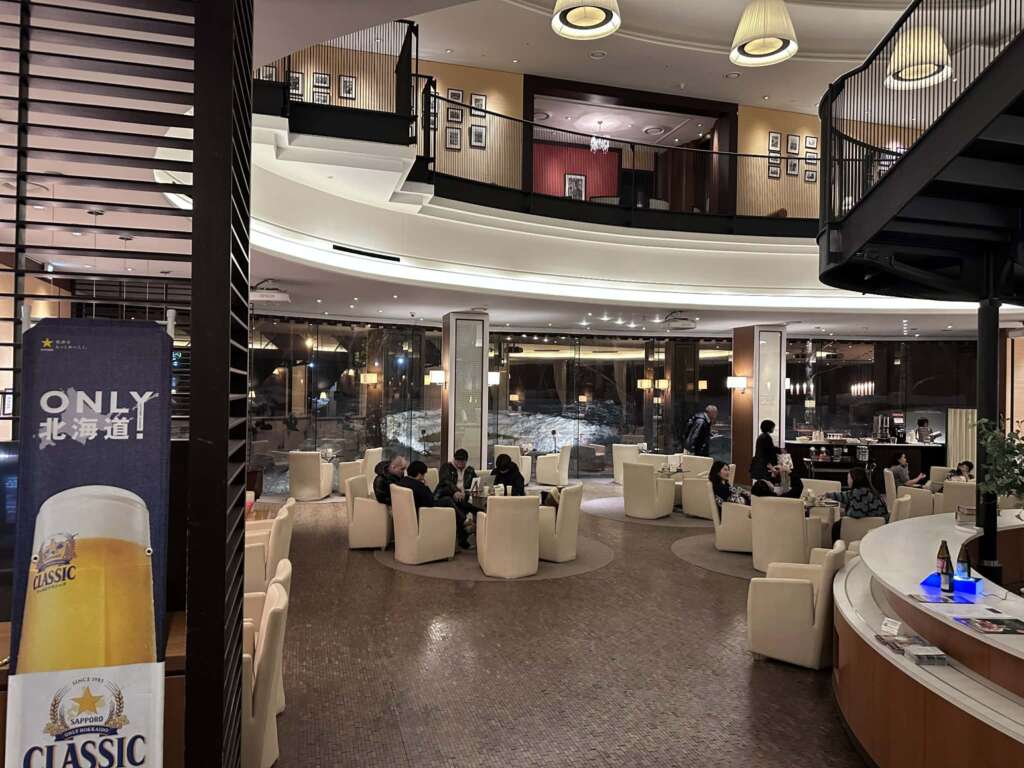 飯店一樓下午開放給住客當免費飲料吧,看著落地窗景銀白雪景,時光不自覺流逝,房間還算寬敞明亮,浴室有浴缸就加分,但半夜窗戶一直傳來雖然音量不大,但奇怪的運轉聲整夜不停,第三晚才發現是除雪車在清馬路上的雪,應該也算是冬季特殊景致吧?