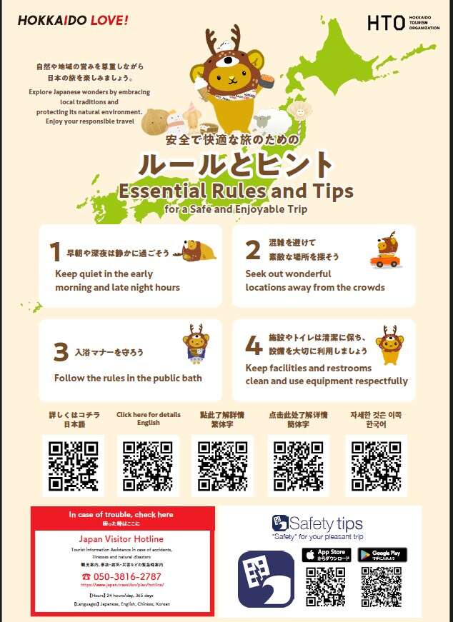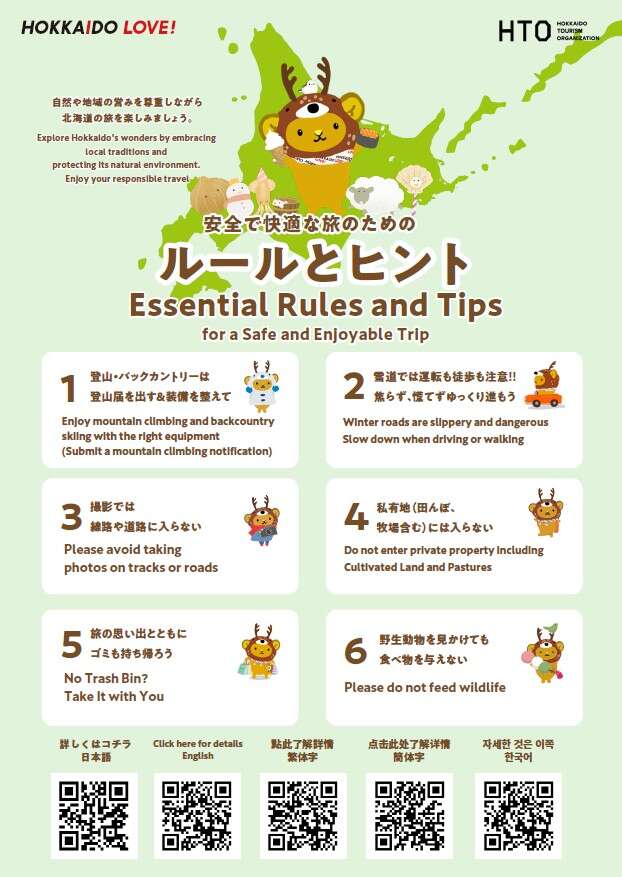 對於無可取代的大自然環境以及當地居民的生活作息請保持敬意祝您能充分享受這趟北海道旅行。